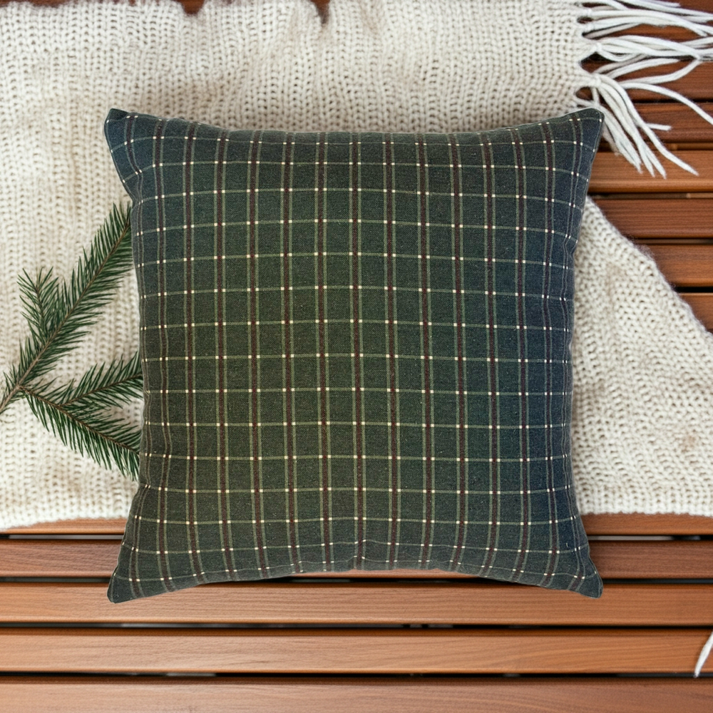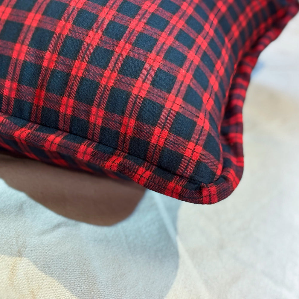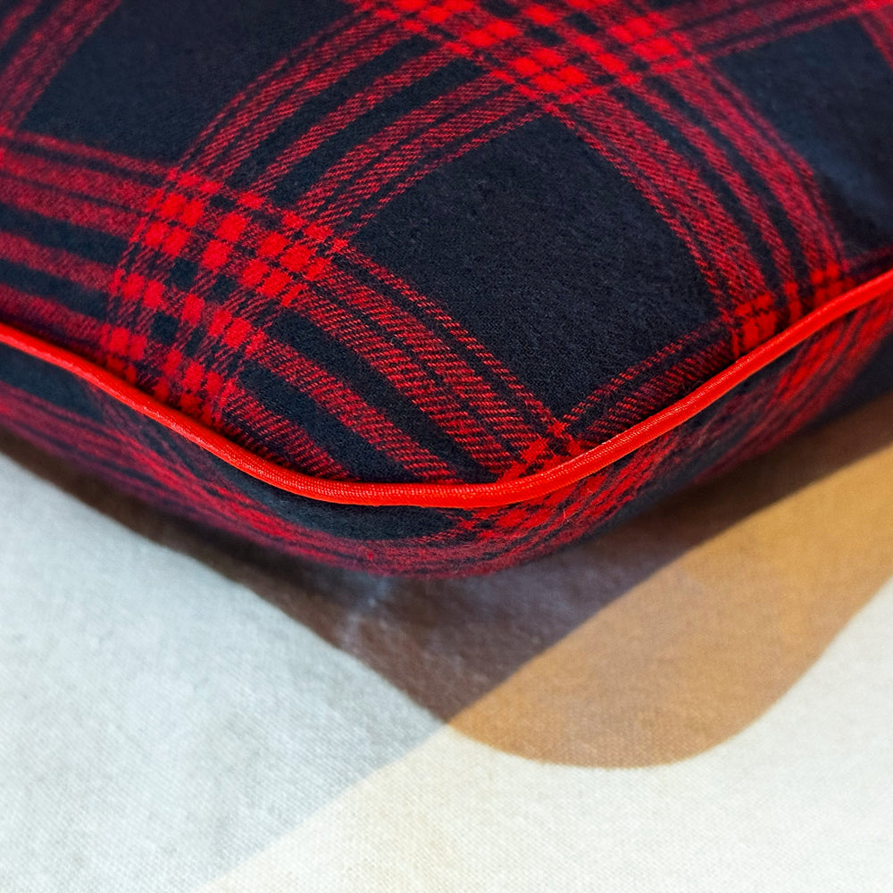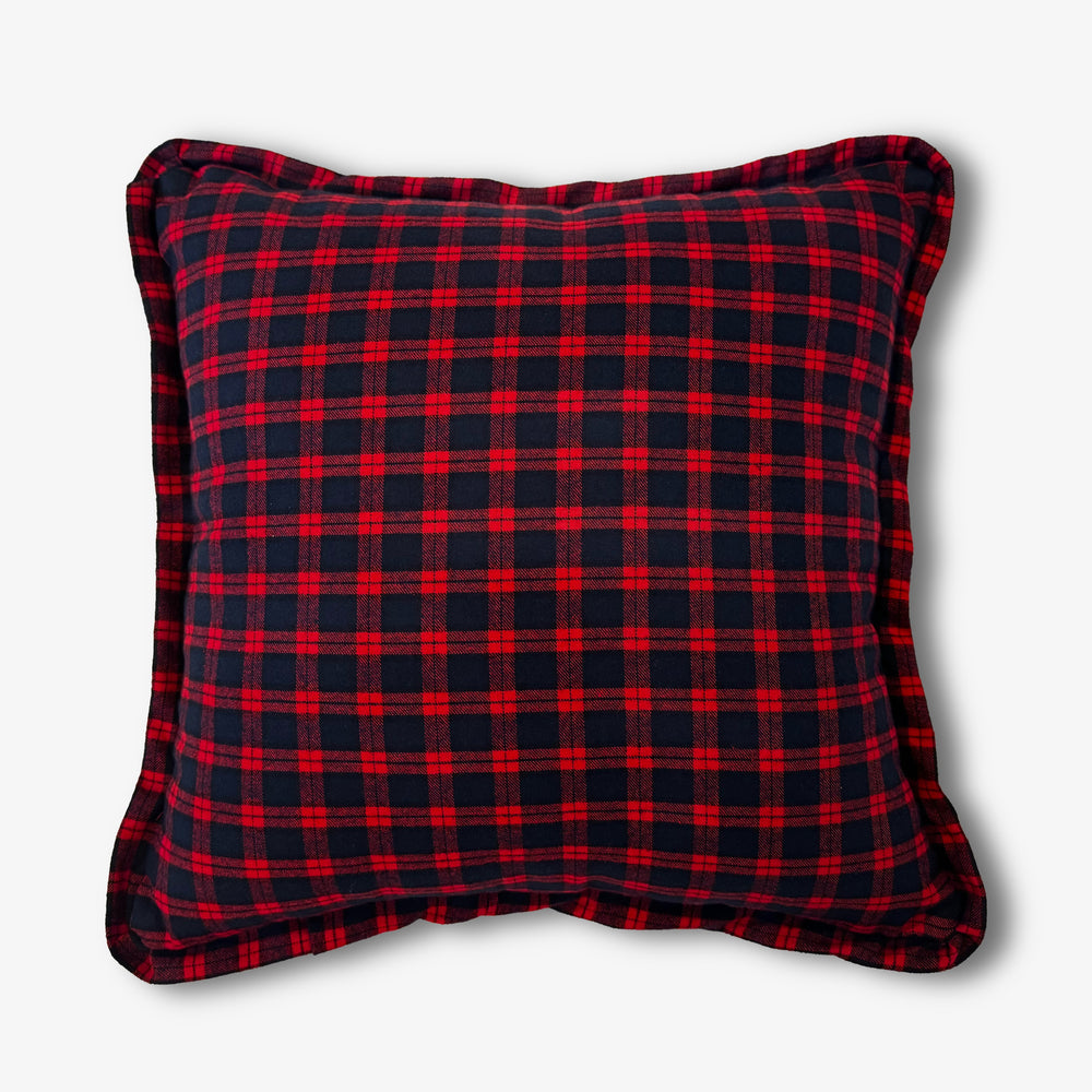 A peaceful peninsula on our island home, this cushion brings timeless manor house elegance with its deep navy and red plaid.